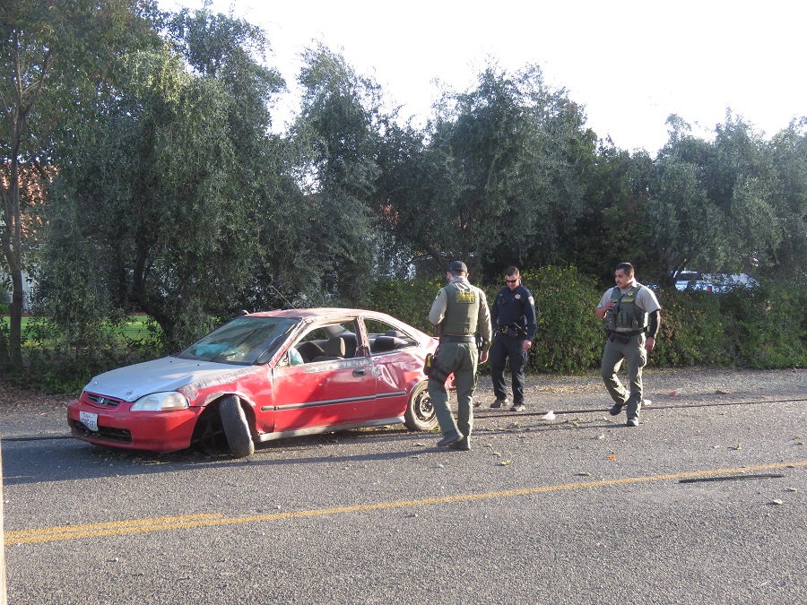 Orland – No using this car to get away Easter Sunday morning. The driver in this hit and run apparently used his own two feet, much like Peter Cottontail hopping down the bunny trail. Glenn County Observer photo by Donna Wilder.