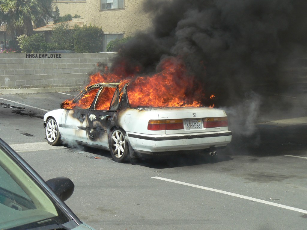 During the fire, a loud pop was heard, the result of a tire exploding.