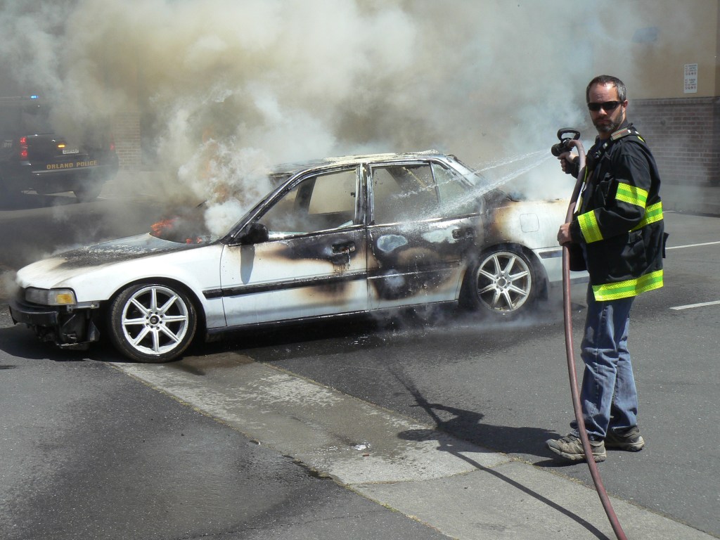 Shortly before noon today, Saturday, Orland firefighters were dispatched to a report of a fully involved vehicle fire at 67 East Walker Street, the address for Metro T-Mobile.