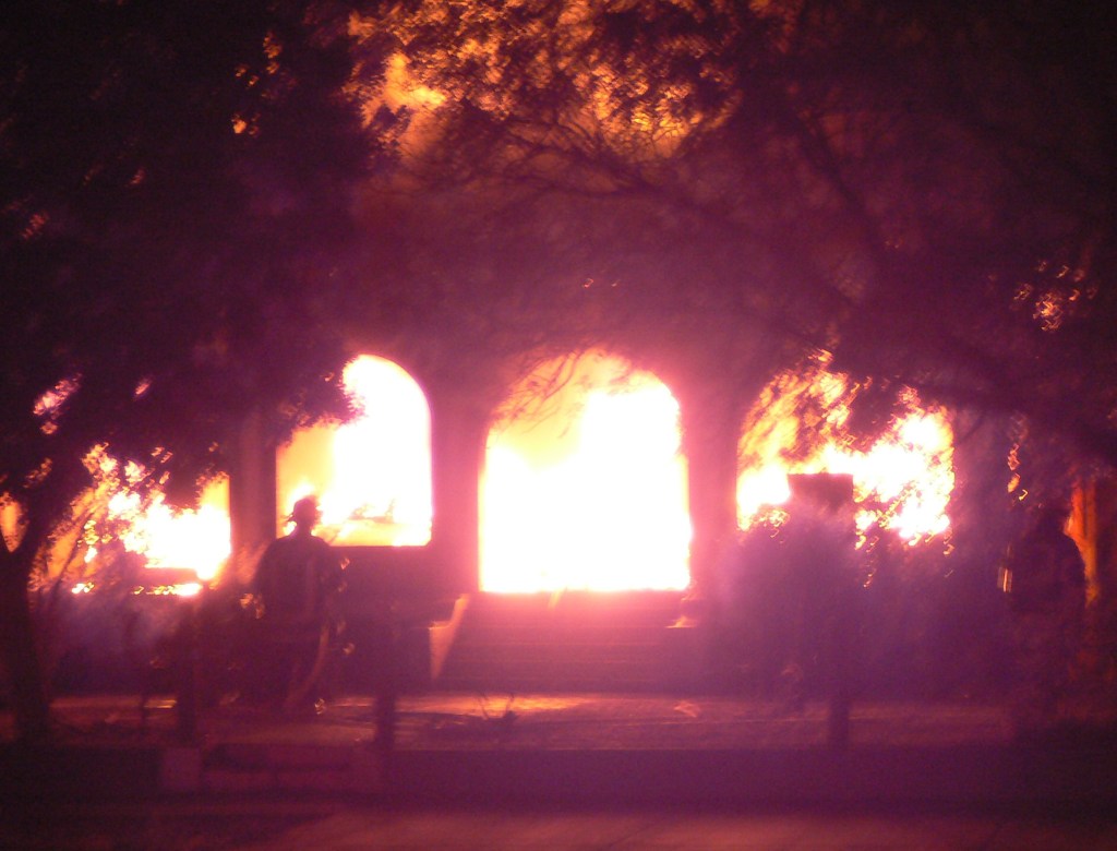 After the fire had almost completely engulfed the house, an exceptionally loud explosion, perhaps a large propane tank, shook the neighborhood.