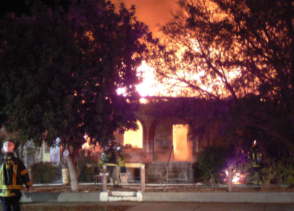 The fire began in the rear, west side of the residence at 504 Third Street, then quickly spread to the front of the structure. This home was located at the southwest corner of the intersection of Third and Tehama Streets.