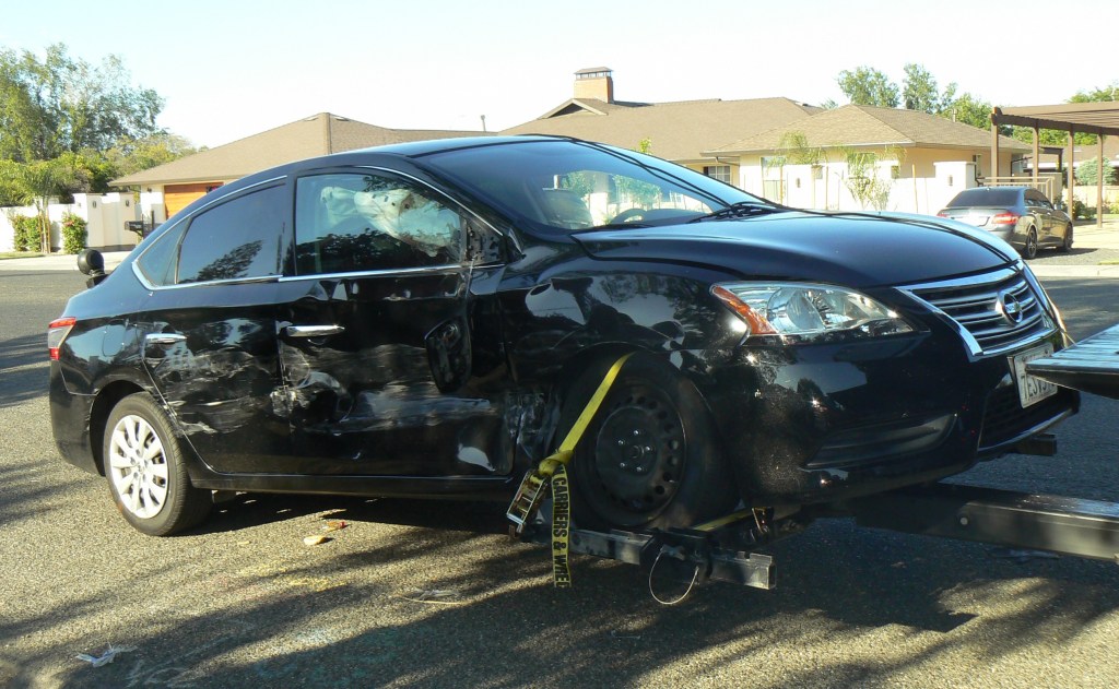 The passenger side of Yoselin Alvarado’s car was crumpled after a pickup collided with it. Glenn County Observer photo by Larry Judkins.