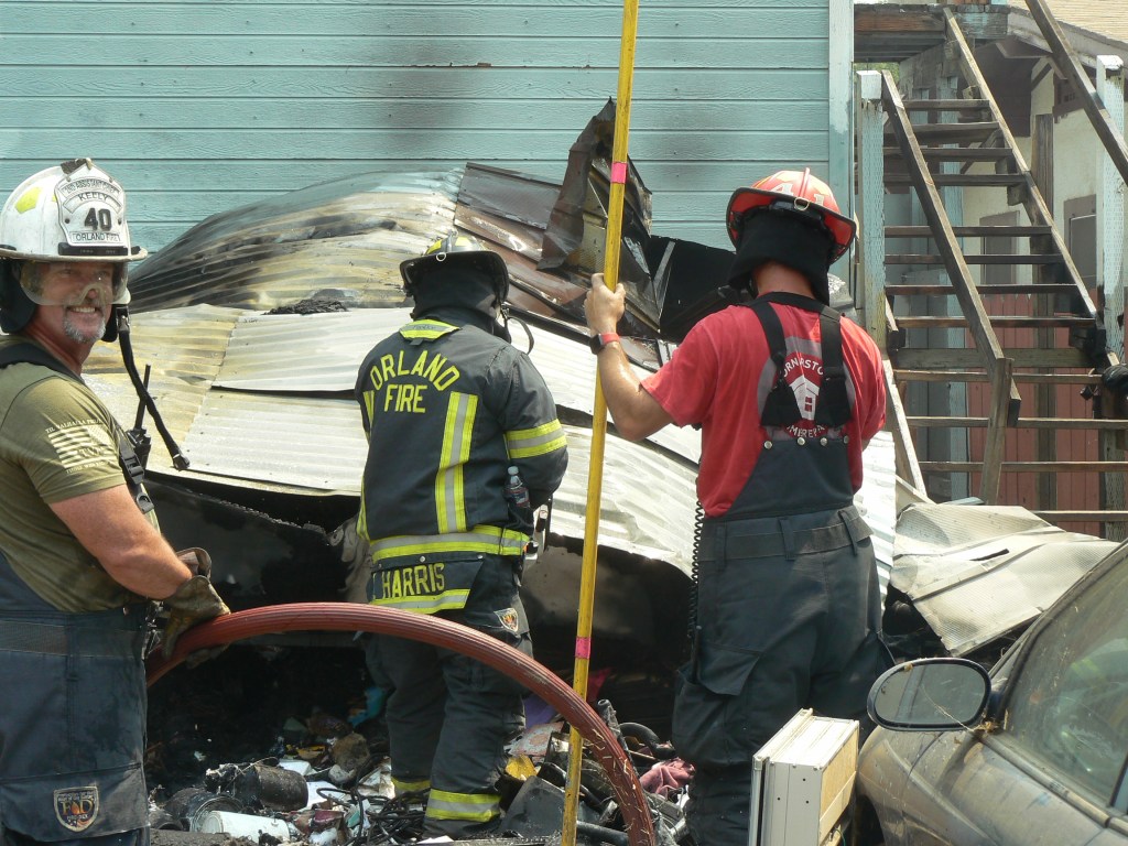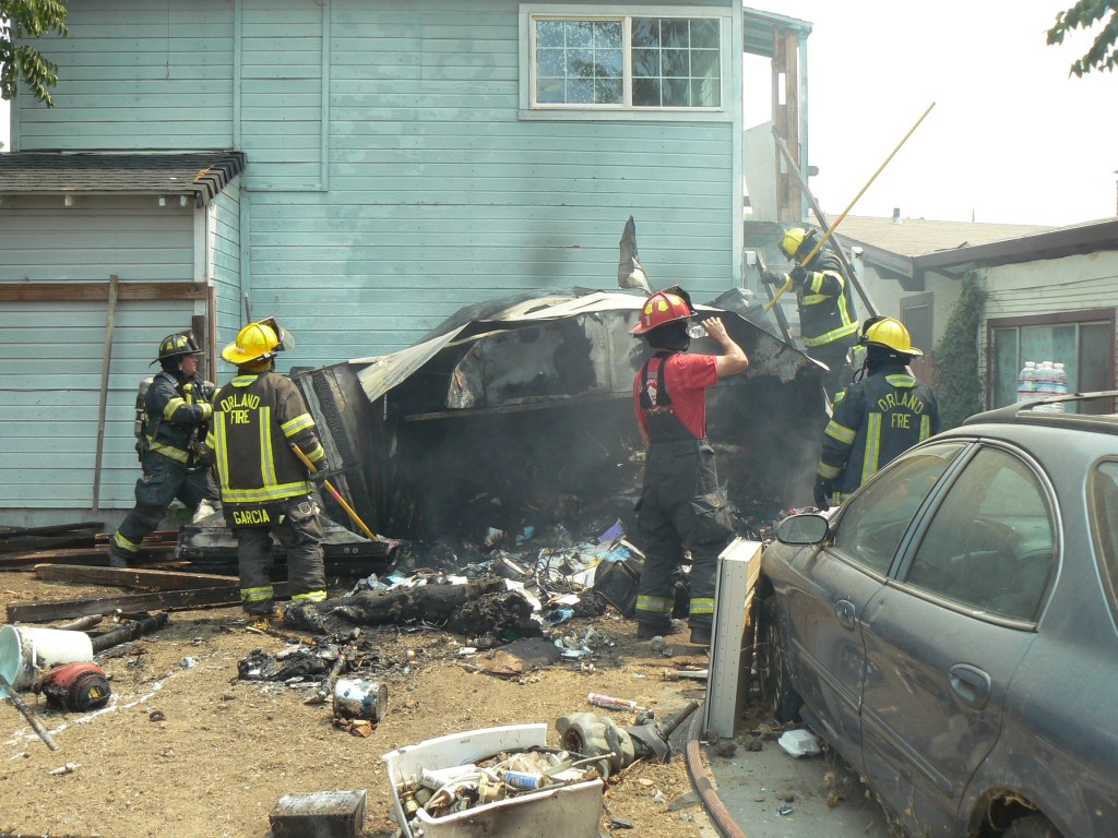 The fire was first reported as a structure fire, then a fire to an outbuilding. The structure could perhaps best be described as a large storage container attached to the rear of the house. It looked to be pretty much stuffed full of junk.