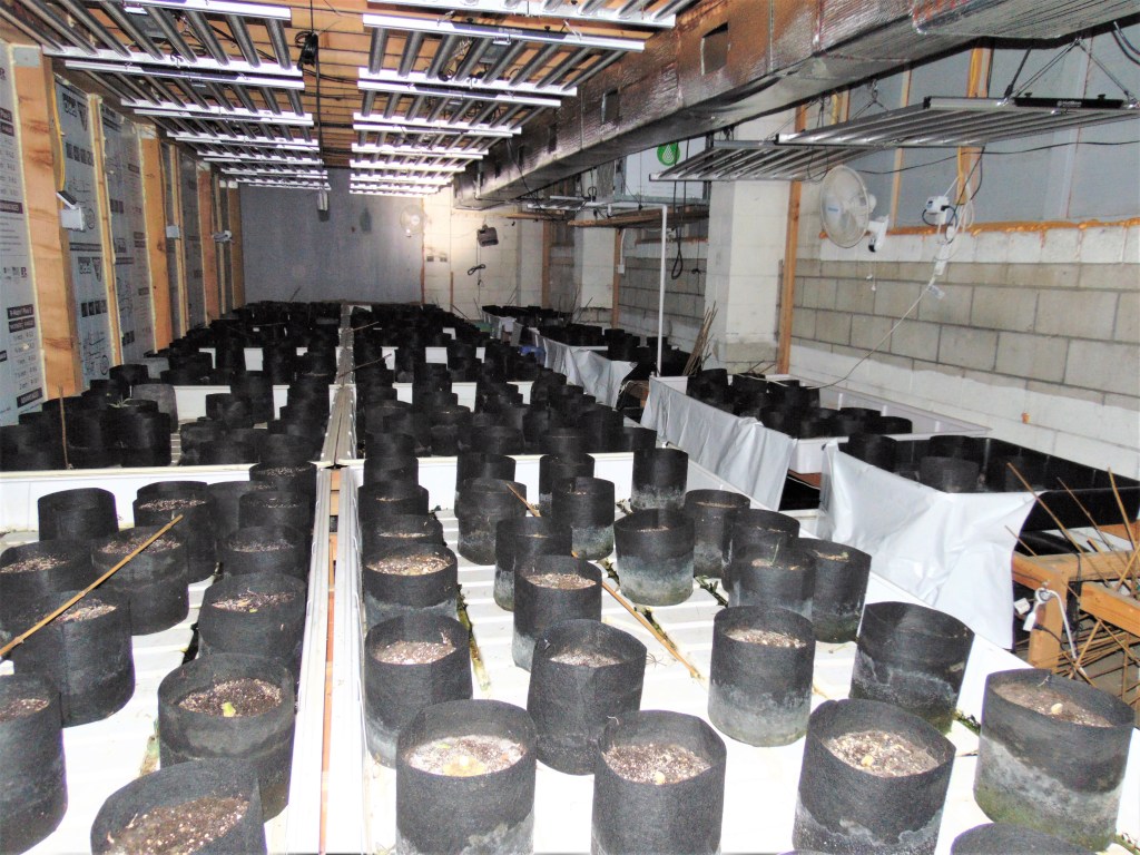Pots with no pot: The growers at the 827 South Tehama Street facility in Willows managed to get away with all their marijuana, leaving behind only some 3,000 stems. Photo courtesy the Glenn County Sheriff’s Office.
