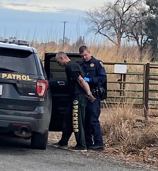 Lamb followed the pickup into a walnut orchard, where it became stuck in the area of County Roads MM and 6. The driver fled the scene on foot through the orchard, while responding law enforcement units from the California Highway Patrol and Glenn County Sheriff’s Office arrived and began looking for him. About three hours later, CHP Officer Cody Pennell and Deputy Clinton Turner spotted a man who matched the description of the suspect. Scanner chatter indicated he attempted to hide in a ditch alongside the road, but the officers were able to take him into custody.