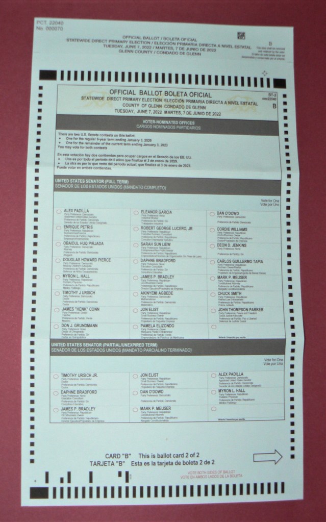 Here are the latest returns for the Glenn County offices contested in the Tuesday, June 7, statewide primary election: