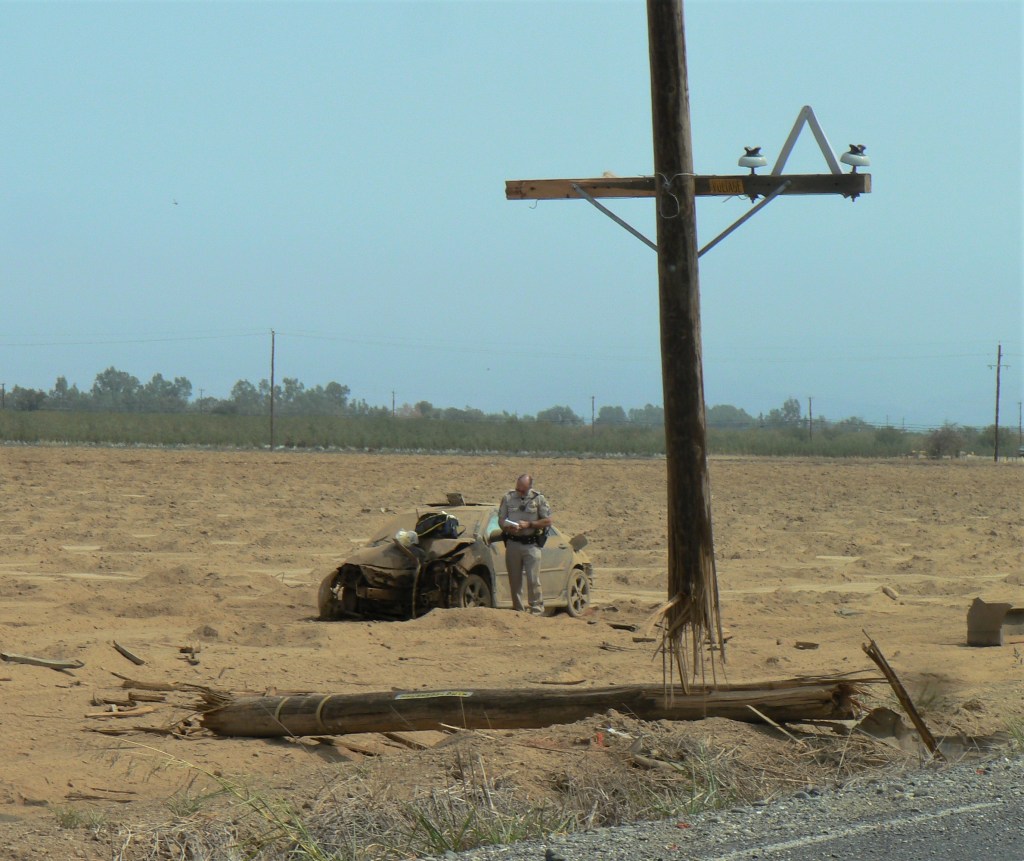 According to the CHP’s traffic incident webpage and this reporter’s observations at the scene, the accident victim was driving east on Road 9, east of Road QQ, at about 11:15 a.m., when he traveled off the north shoulder and sheered off a power pole.