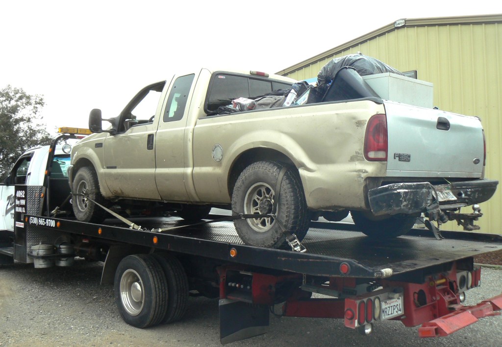 The pickup, a Ford F-350, was towed from the area by Al Quintel, owner of Zips Towing. The trailer was left in the orchard.